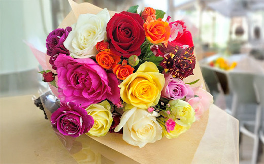 - 【天使のバラ】全3回定期便 薔薇だけのミニ丈ブーケ(色MIX)<141-811_6>