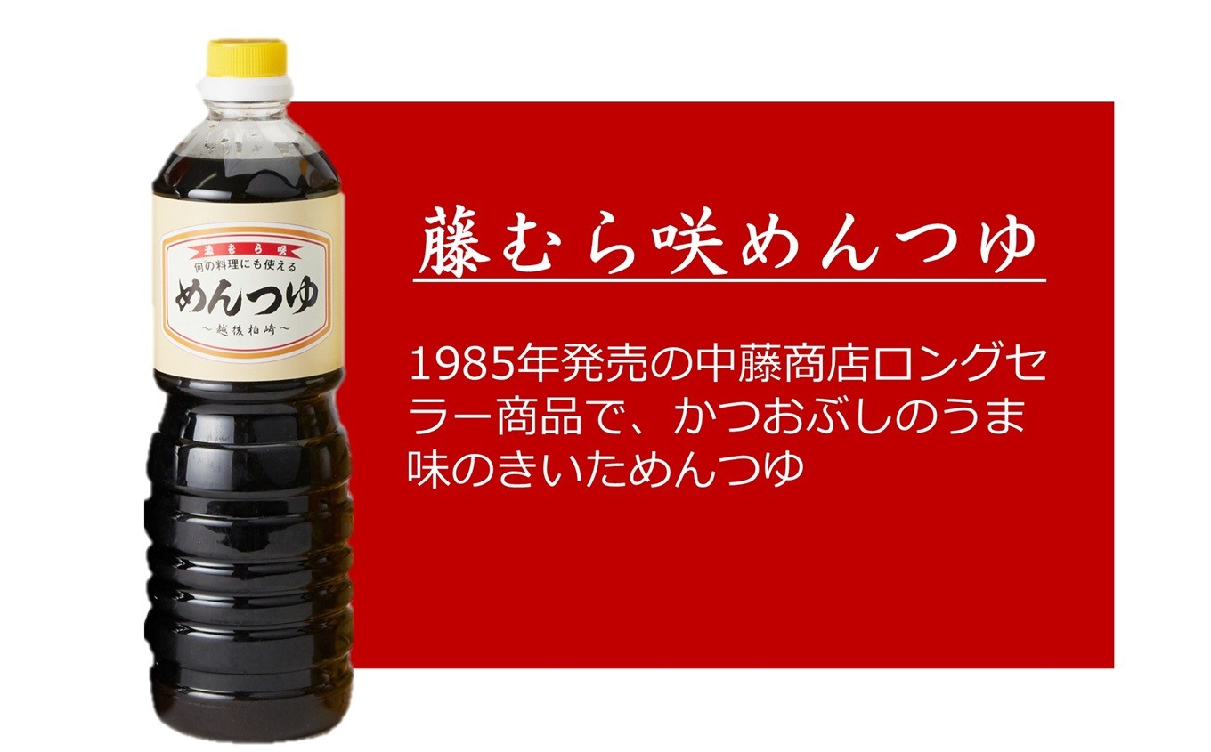 藤むら咲 醤油・めんつゆ(各種類1000ml×1本 計2本セット)化粧箱入り 包装品[Y0617]