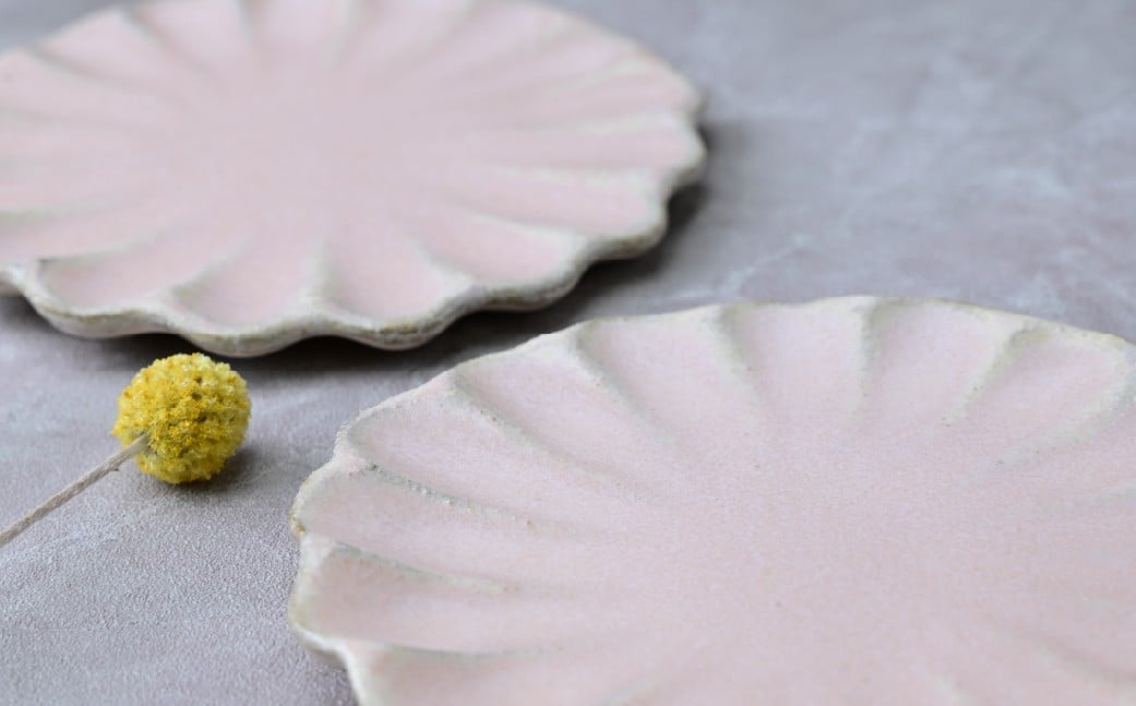 - 工房とめ お花小皿 11.5cm 2枚セット ピンク | 食器 皿 小皿 丸皿 お花小皿 器 うつわ 益子焼 陶芸 栃木県 茂木町