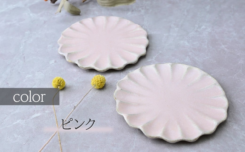 工房とめ お花小皿 11.5cm 2枚セット ピンク | 食器 皿 小皿 丸皿 お花小皿 器 うつわ 益子焼 陶芸 栃木県 茂木町