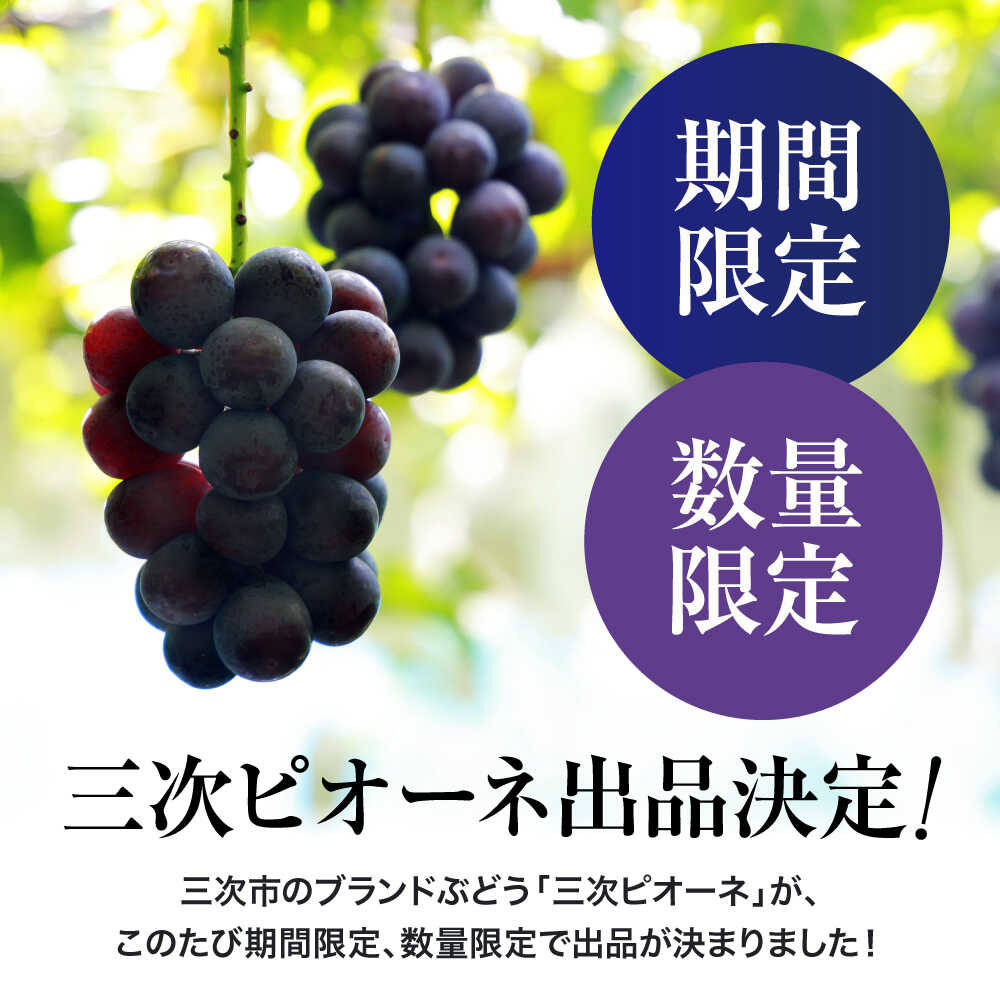 - 【ふるさと納税】三次ピオーネ 露地栽培 青秀 2kg (3〜5房)【先行予約/数量限定】<8月下旬頃から順次発送> ピオーネ 40セット限定 ぶどう 葡萄 ブドウ フルーツ 種なし 贈答 ギフト 人気 おすすめ 広島 三次 ふるさと納税 三次市 / 三次ピオーネ生産組合 [APBD002]
