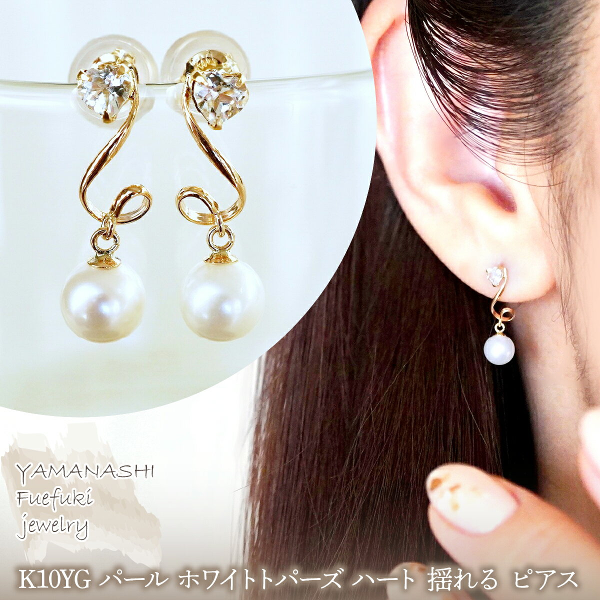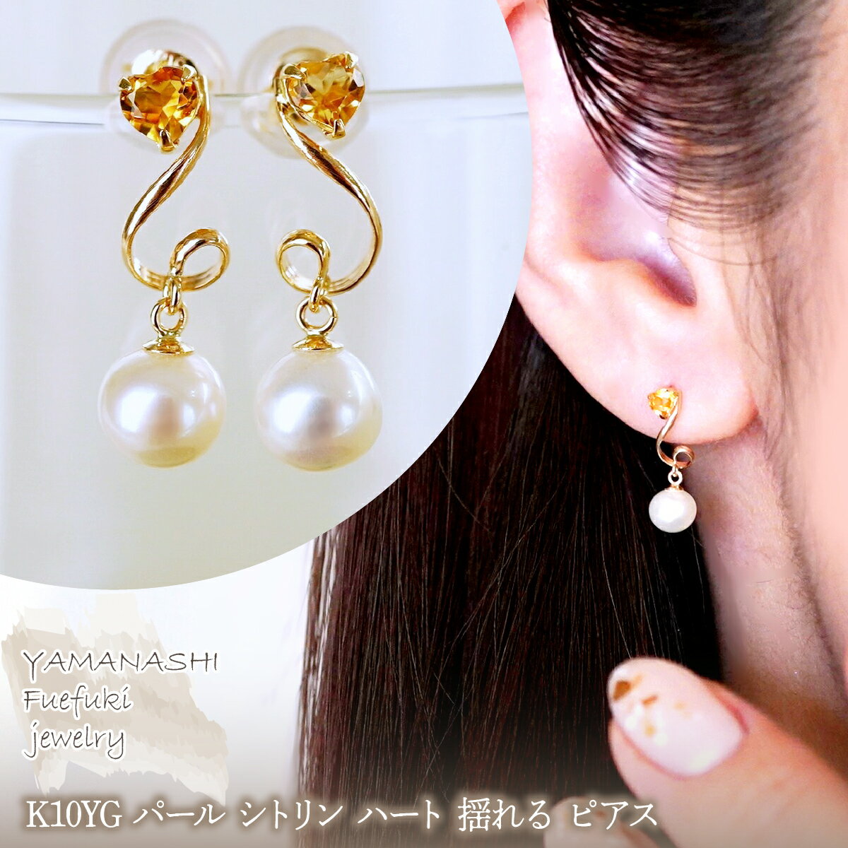 - 【ふるさと納税】K10YG(10金) イエローゴールド パール 選べる天然石 ハート 揺れる ピアス 保証書付 2122 242-063 ジュエリー アクセサリー 記念日 ギフト プレゼント エレガント 高品質 レディース 誕生石 誕生日 母の日 ふるさと納税 送料無料
