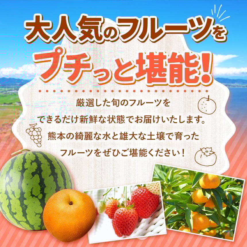 【 定期便 9回 】プチっと 堪能 !家庭用 フルーツ定期便 | 果物 フルーツ 高評価 いちご みかん 不知火 スイカ ぶどう 梨 柿 アイス クレープ 2回 ~ 12回 1年 お試し 旬 採れたて 熊本県 玉名市