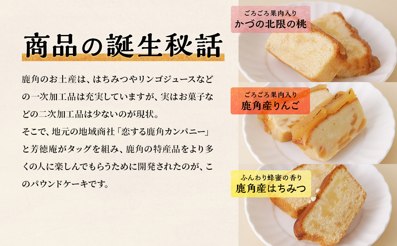 まるごとかづのパウンドケーキ(3本セット)【芳徳庵】 菓子工房 こだわり ボリューム ずっしり 冷蔵 パウンドケーキ デザート スイーツ ケーキ お菓子 林檎 りんご 蜂蜜 はちみつ 桃 もも モモ しっとり 秋田県 秋田 あきた 鹿角市 鹿角 かづの
