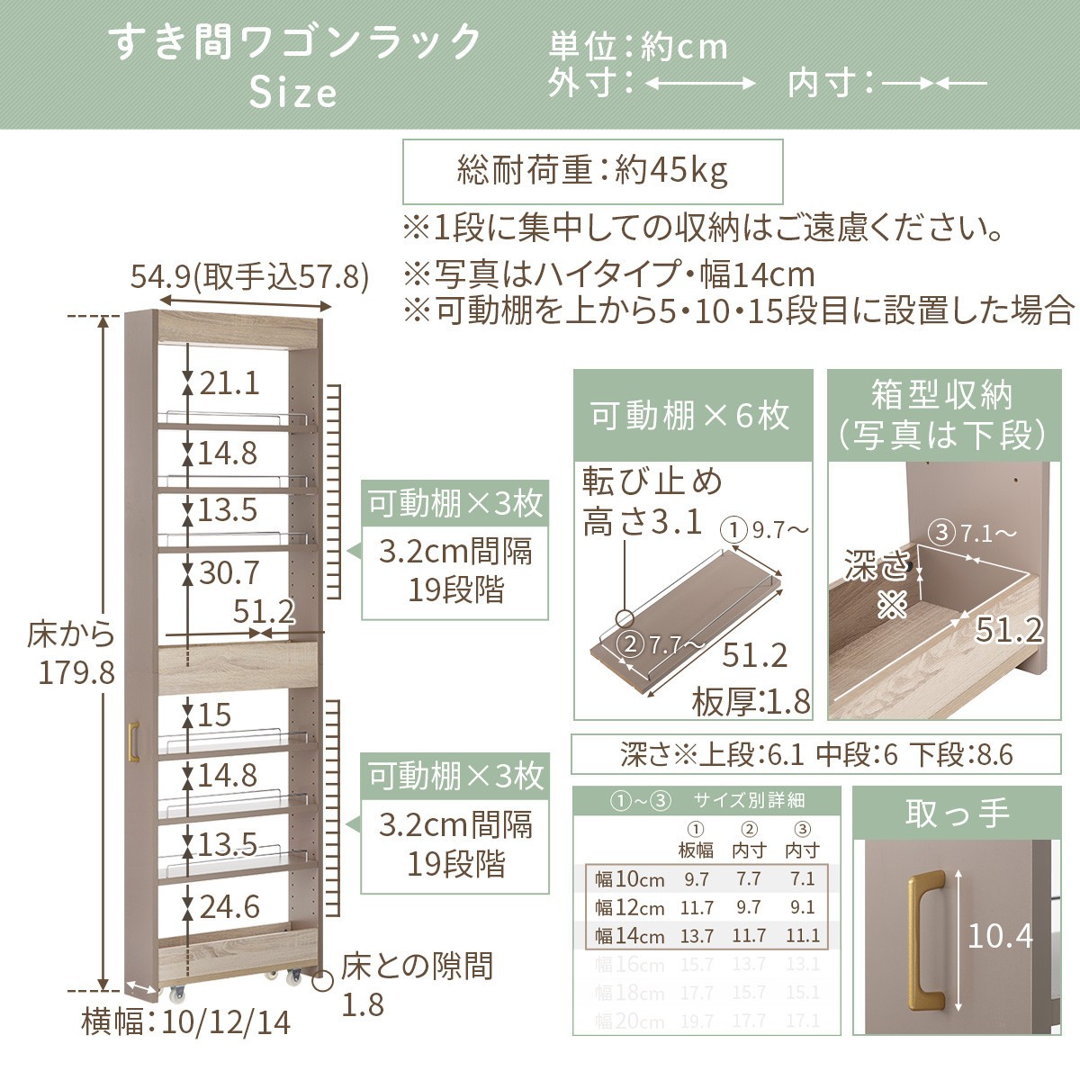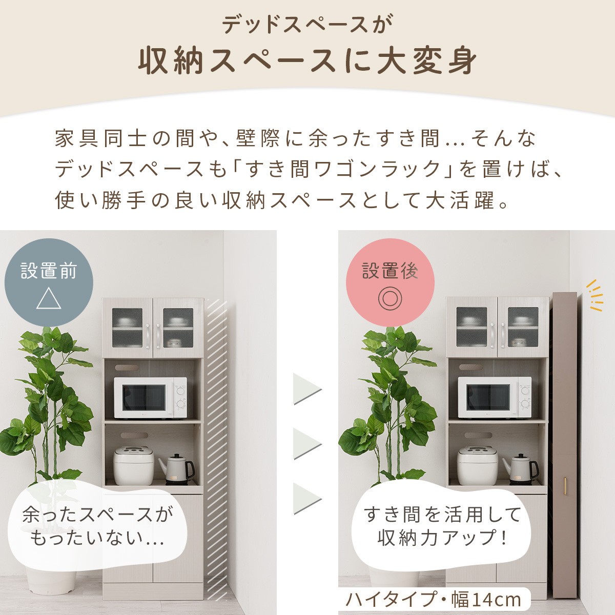 - 【完成品+設置付き】すき間 ワゴンラック ハイタイプ 幅10~14cm (選べる2色×3サイズ)キッチン 隙間収納 キャスター付き キッチンワゴン スリム 収納 キッチン隙間ワゴン キッチン隙間家具 ラック KKONRA945070