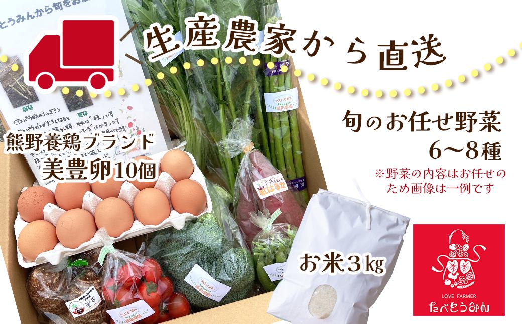 野菜セット たべとうみんの旬菜ボックス(お米付) 野菜 詰め合わせ 旬 卵 美豊卵 米 精米 たべとうみん | 愛媛県西条市