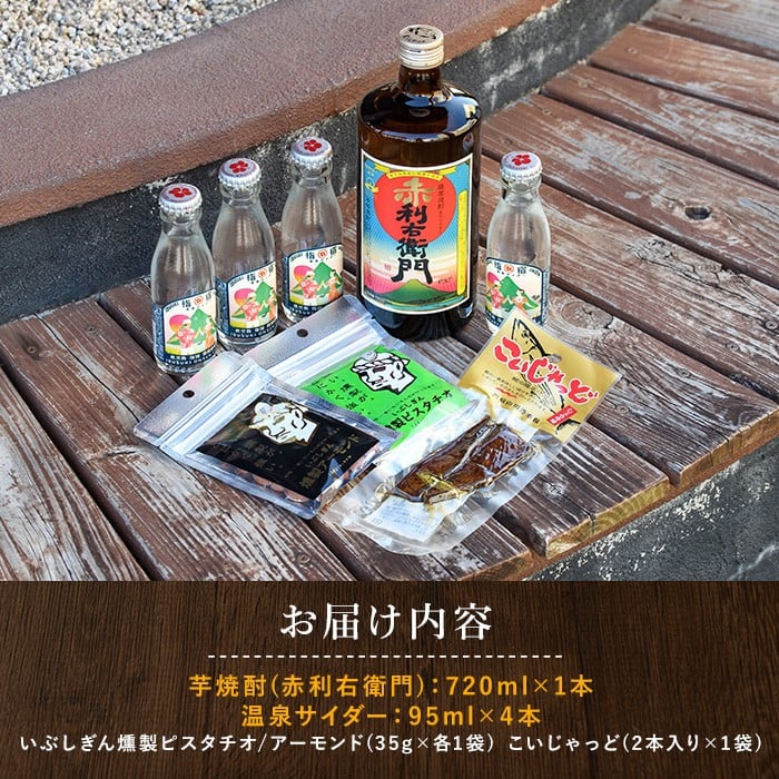- 指宿ハイボールセット&おつまみセット(燻製アーモンド・燻製ピスタチオ・かつお腹皮燻製)(岡村商店/IB024-009)