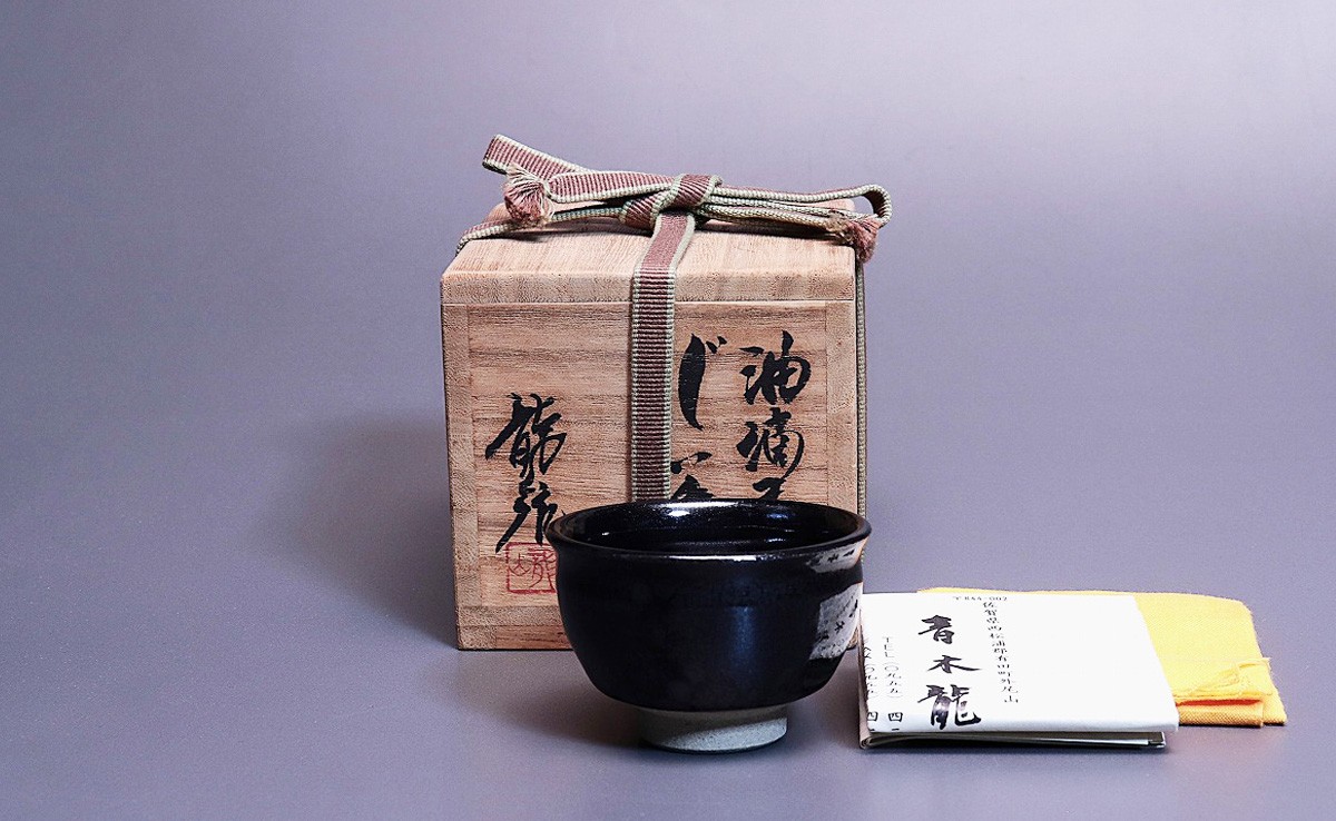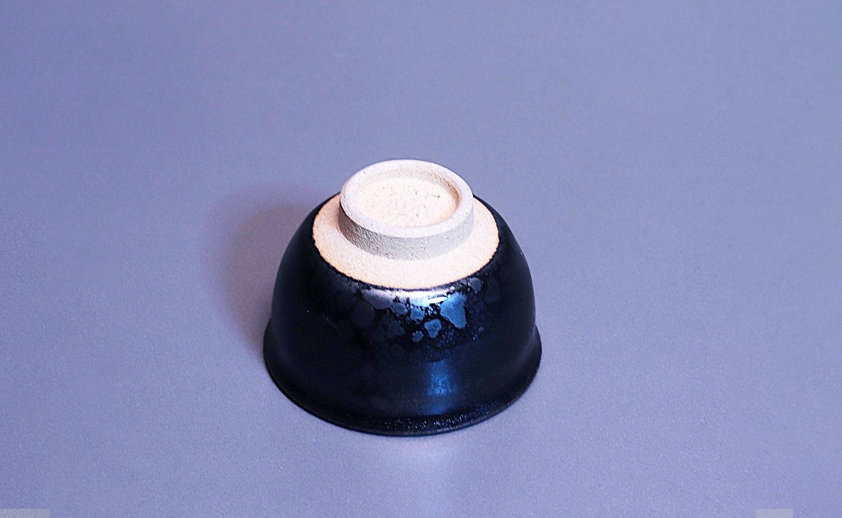 - 文化勲章受章 青木龍山作 油滴天目ぐい吞【田中陶器店】有田焼 伝統工芸 限定品 美術品 A400-72