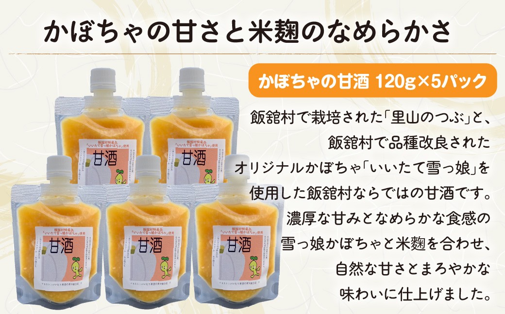 かぼちゃの甘酒(いいたて雪っ娘使用)120g×5パック 【 ふるさと納税 人気 おすすめ 甘酒 あまざけ 米麴 里山のつぶ ブランド米 銘柄米 かぼちゃ いいたて雪っ娘 希少 コラボ 地域密着 震災 復興 福島 飯舘村 】 ITTAM007