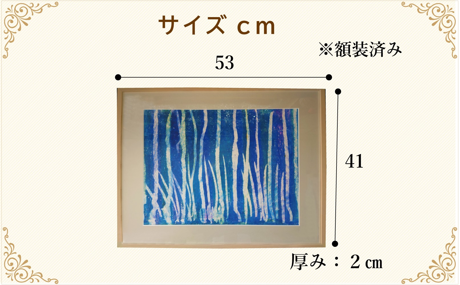 【一点もの】原画作品「白樺」アート作品 インテリア 絵画 しらかば 風景 絵 クレヨン画 壁掛け 額装 福祉 送料無料 就労継続支援B型 ふくちゃん 福島県 新地町