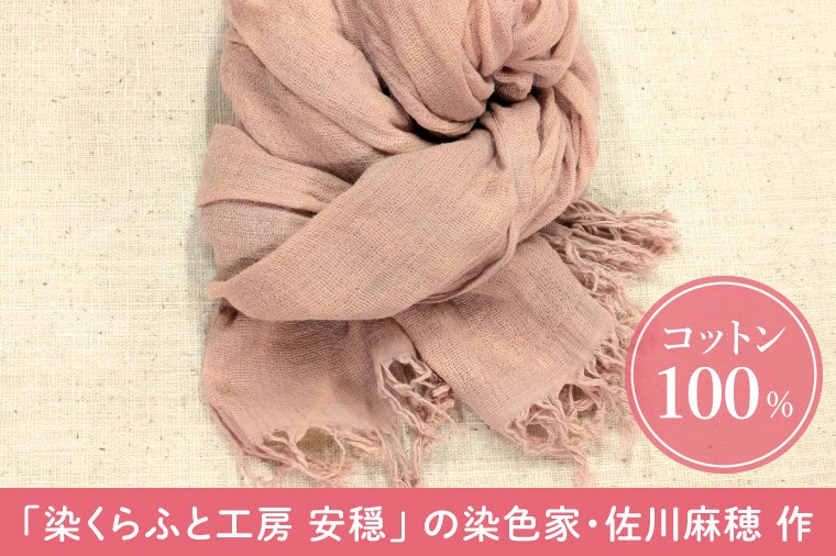 - 【数量限定】里山の草木染めコットンストール(びわ・ピンク)【ストール 染物 手染め 自然 工房 北茨城市 茨城県】(DJ004)