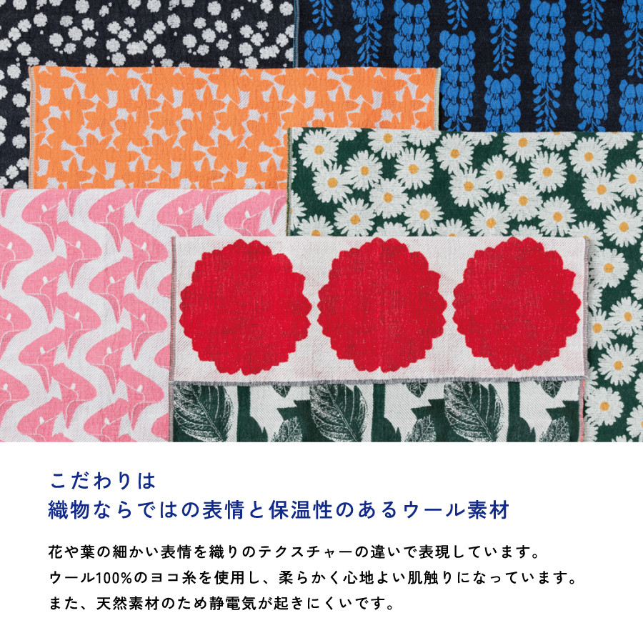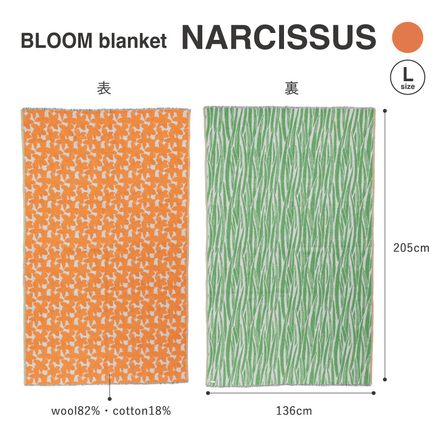 YURI HIMURO BLOOM blanket (NARCISSUS / L) ブランケット ウール コットン 【選べるカラー】 イエロー オレンジ L 136cm×205cm 花柄 葉柄 スイセン リバーシブル テキスタイル ブランド プレゼント ギフト 織物 YURI HIMURO 山梨 富士吉田