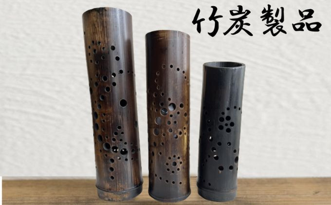 - [№5819-0323]群馬県 東吾妻町産 竹炭 製品 3本セット 灯り 照明 インテリア 飾り 消臭