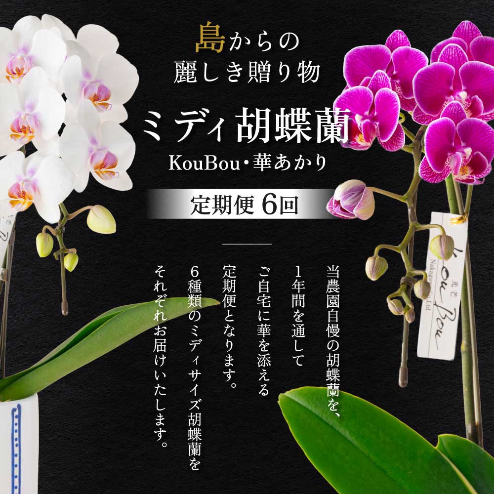 - 【ふるさと納税】定期便6回 ミディ胡蝶蘭 2本立ち 2ヶ月に1回 合計6種 ランダム なかがわ 胡蝶蘭 コチョウラン 蘭 ラン インテリア 観賞用 贈答品 贈り物 ギフト 送料無料 株式会社なかがわ