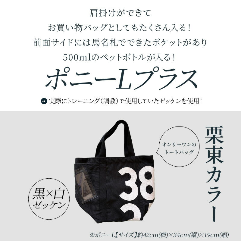 【ふるさと納税】ポニー L プラス 栗東 カラー 大きめ トートバッグ バッグ ゼッケン 栗東カラー 黒×白文字 マスコットチャームミミちゃん(黄色)付き 肩掛け お買い物 サイドポケット オンリーワン ナンバー JRA 日本中央競馬会 日用品 お取り寄せ 滋賀県 守山市 送料無料
