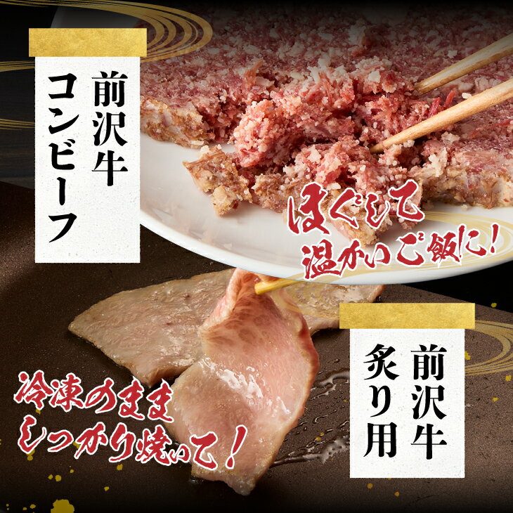 - 【ふるさと納税】【冷凍】 前沢牛 牛トロ丼 セット 炙り用10g×12枚 コンビーフ100g×2個 (4人前) 牛トロ コンビーフ 霜降り 冷凍 直営レストラン 牛匠おがた 駅東店 人気メニュー ステーキ醤油 オリジナル ブランド牛 ビーフ 肉 丼ぶり 贅沢 ご褒美 ギフト 贈答 [ME026]