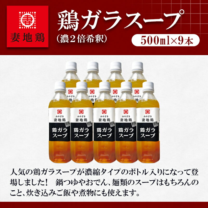 【ふるさと納税】「妻地鶏」がらスープ45 「濃縮2倍希釈」(500ml×9本)国産 ふるさと納税 宮崎県 西都市 さいと サイト 鶏肉 <8-25a>