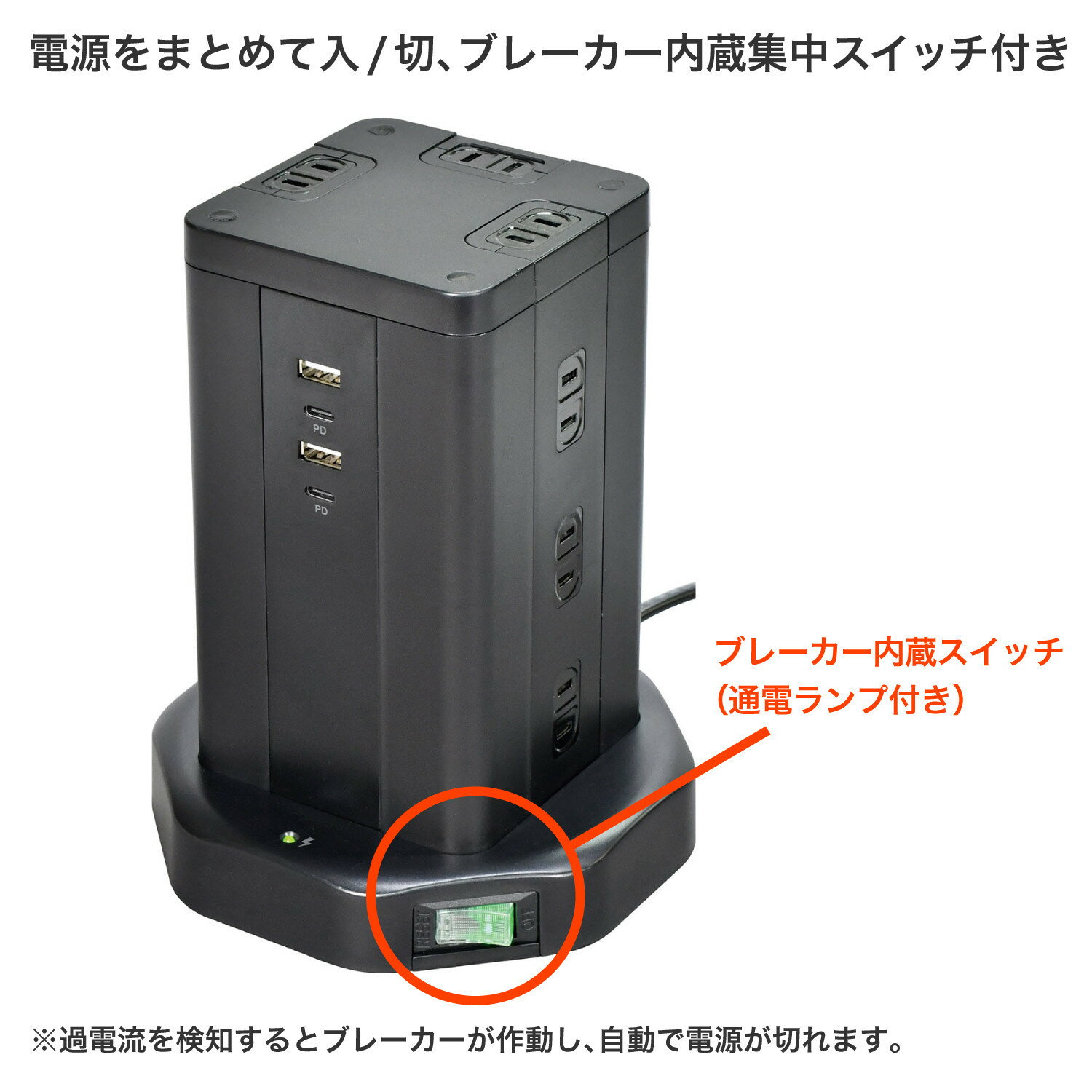 【ふるさと納税】タワー型USBタップ PD40W WBS-TW12442BUC(BK) | USB タップ タワー型 電源タップ 電源 USB充電 急速充電 ブラック デスク周り コンセント スマートフォン 充電器 家電