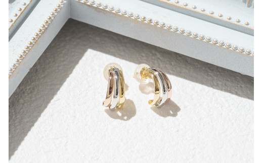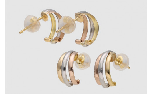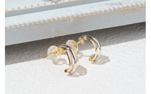 - 〈 甲府ジュエリー 〉K18/Pt900 スリーカラースタッドピアス 43-6278