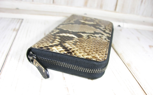 ダイヤモンドパイソン ファスナー長財布 / 財布 パイソンレザー ラウンドファスナー長財布 レザーウォレット 本革財布 メンズ財布 レディース財布 エキゾチックレザー カード12枚収納 YKKエクセラ ファスナー財布 ハンドメイド財布 経年変化 レザー小物 ギフト 革財布 職人手作り 千葉県 No.400