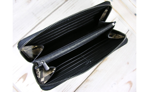- ダイヤモンドパイソン ファスナー長財布 / 財布 パイソンレザー ラウンドファスナー長財布 レザーウォレット 本革財布 メンズ財布 レディース財布 エキゾチックレザー カード12枚収納 YKKエクセラ ファスナー財布 ハンドメイド財布 経年変化 レザー小物 ギフト 革財布 職人手作り 千葉県 No.400