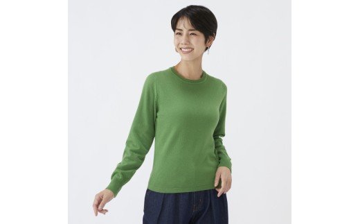 - 【グリーン】日本製 カシミヤ100% レディース クルーネック Sサイズ