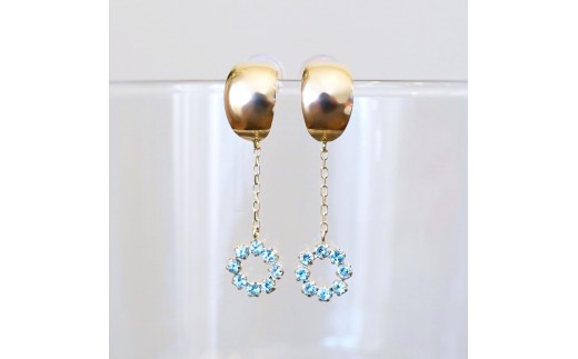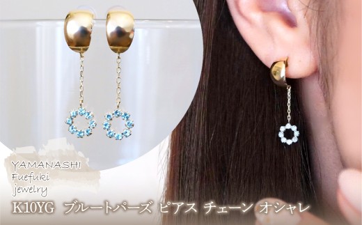 K10YG(10金) イエローゴールド ブルートパーズ ピアス チェーン オシャレ 保証書付 YF-18 242-064-a