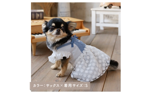 - フラワーレースサロペットワンピース デニム 花柄レース(L) ドッグウェア 小型犬【ココアトワ(cocoAtoi)】 [№5223-7158]0253