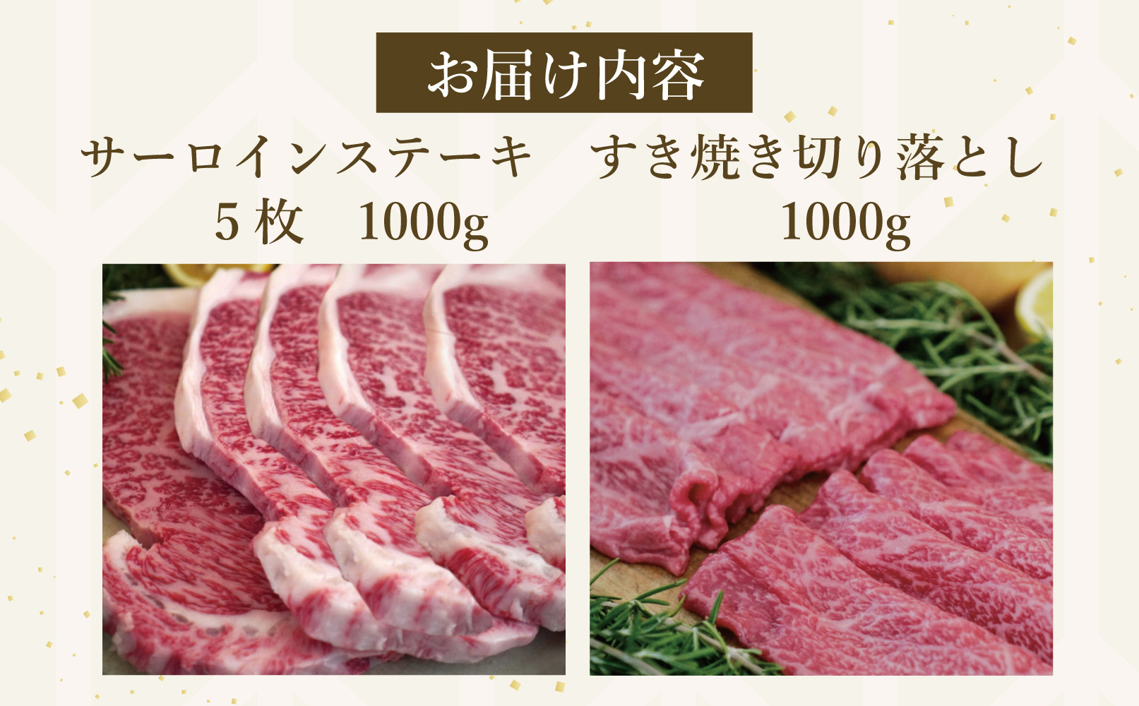 - 【セット】佐賀牛サーロインステーキ200g×5枚 計1000g・すきやき切落250g×4パック 計1000g