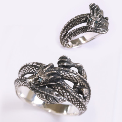 <和の彩 wanoiro>ブルーダイヤモンドの瞳を持つ青龍リング 21号 659-876-21【1490431】