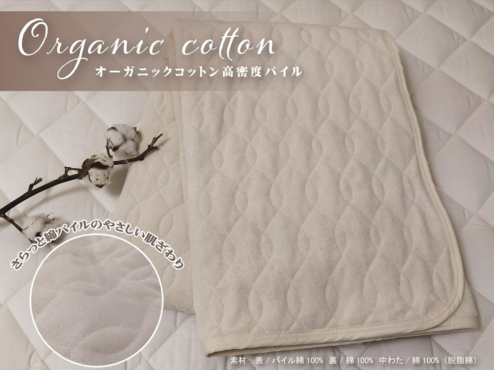 オーガニックコットン 敷きパッド 綿シンカーパイル シングル アイボリー 1枚 OGSK-1SIV|天然素材 綿100% 快眠 快適 熟睡 睡眠 洗える 洗濯可能 丸洗い可能 [3221]