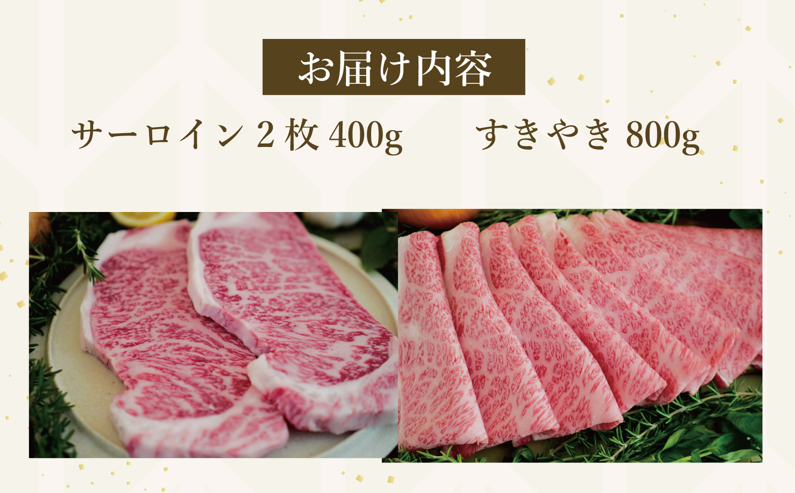 - 【セット】佐賀牛サーロインステーキ200g×2枚 計400g・すきやき800g