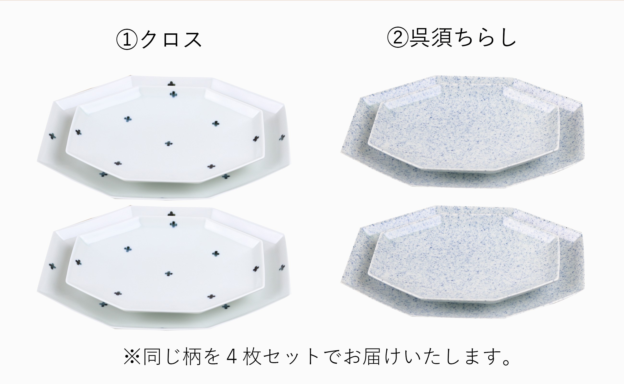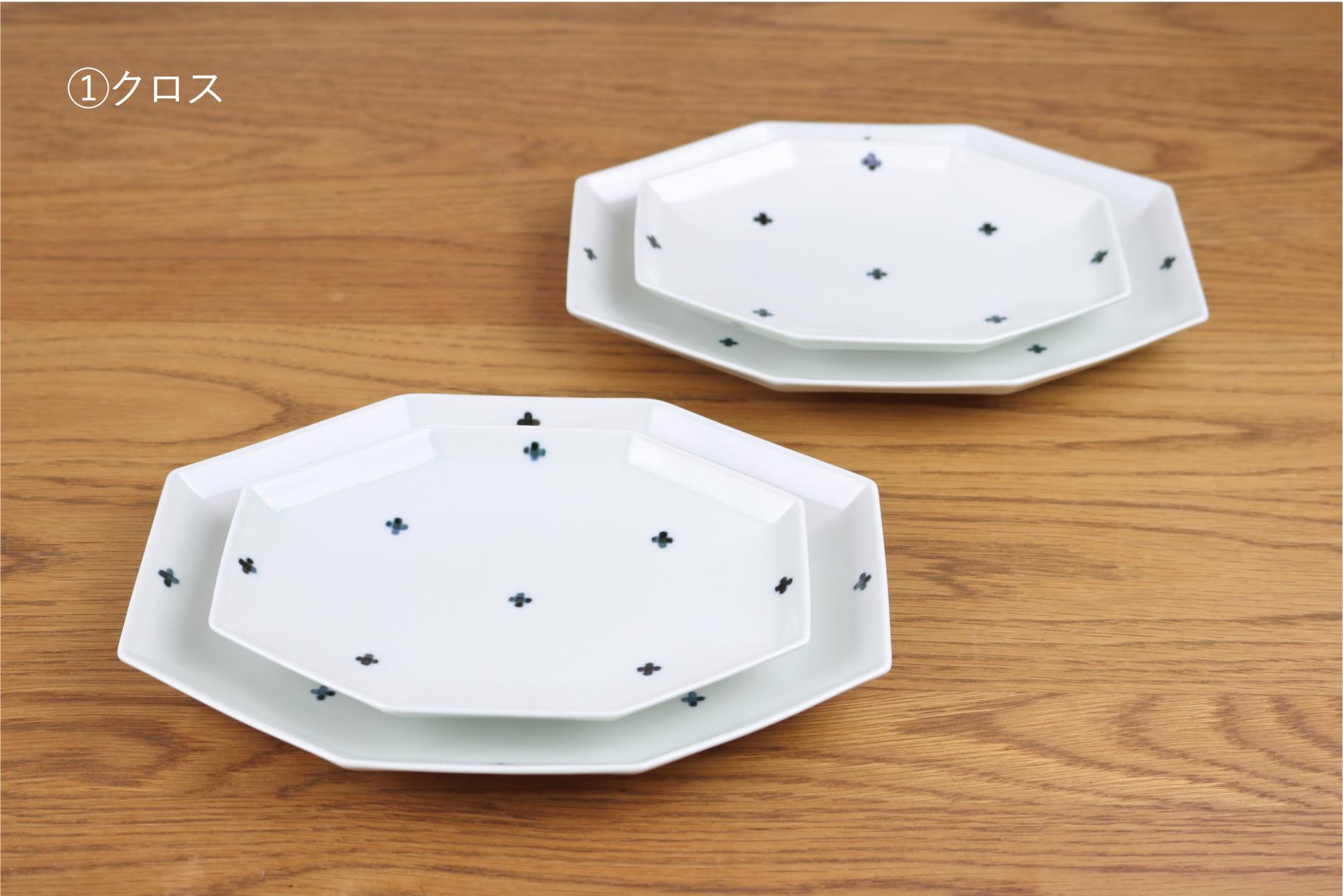 - 【セット】カネアオ 有田焼 八角長皿 大2枚・小2枚(※柄をお選びください。)金善窯