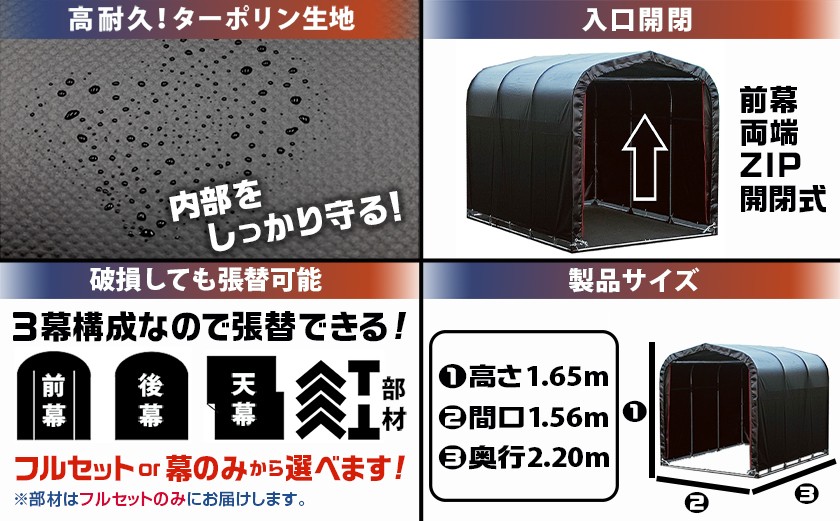 サイクルハウス3台用 BK【巻上げ式】_DI-J402-S2026_(都城市) サイクルハウス 3台用 ブラック 巻上げ式 組立式 組立説明書付 収納 便利 耐久性 張替用幕 前幕 後幕 天幕 幕取替