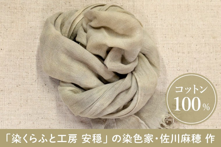 - 【数量限定】里山の草木染めコットンストール(ヨモギ・クリーム系)【ストール 染物 手染め 自然 工房 北茨城市 茨城県】(DJ005)