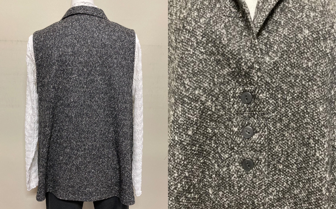 襟付きベスト グレー 【テーラードカラー】 1枚 / レディースベスト テーラードベスト グレーベスト Aラインベスト レディーストップス 重ね着ベスト 体型カバーベスト きれいめカジュアルベスト レディースジレ ゆったりベスト 大人カジュアルベスト レイヤードベスト レディースファッション ジレベスト 広島県 No.1214