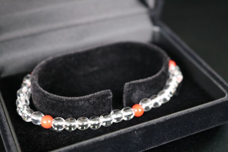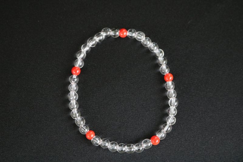 - 赤サンゴと水晶の数珠ブレスレット | アクセサリー ブレスレット ジュエリー 珊瑚 赤珊瑚 宝石 サンゴ プレゼント クリスマス バレンタイン カジュアル レディース 贈答用 人気 高価 高級 おすすめ ふるさと納税サンゴ ふるさと納税ネックレス 高知県 室戸市
