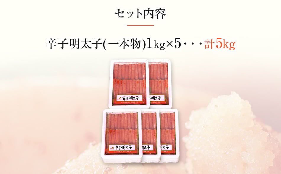 - まるきた水産 辛子明太子1本物5kg(1kg×5)【ギフト用もあります】