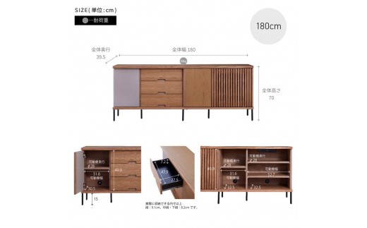 AGUERO アゲロ 180cm サイドボード <全4色> 【モーブル】【大川家具】