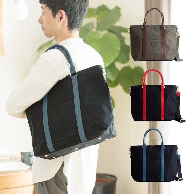 - 「日乃本帆布」 2WAY ビジネスショルダー 〔 色 が 選べる モスグリーン ブラック×レッド ブラック×ブルー〕 バッグ バック ビジネス ショルダー ショルダーバッグ 帆布バッグ