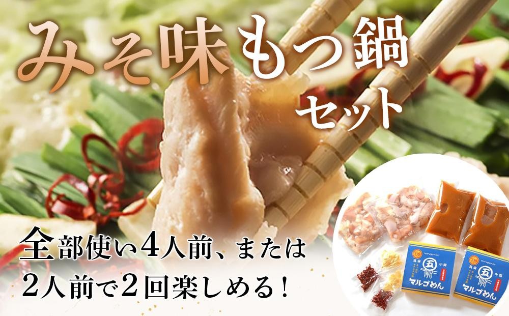 もつ鍋 みそ味2人前×2セット(合計4人前)(米粉麺付) <大任町>