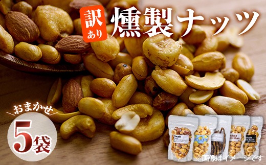 <訳あり> 燻製ナッツ 詰め合わせ (おまかせ5袋) セット 燻製 ナッツ 透明真空パック ミックスナッツ ピーナッツ 加工品 加工食品 おつまみ おやつ 大分県 佐伯市 防災【FD06】【希望の森 太陽農園】