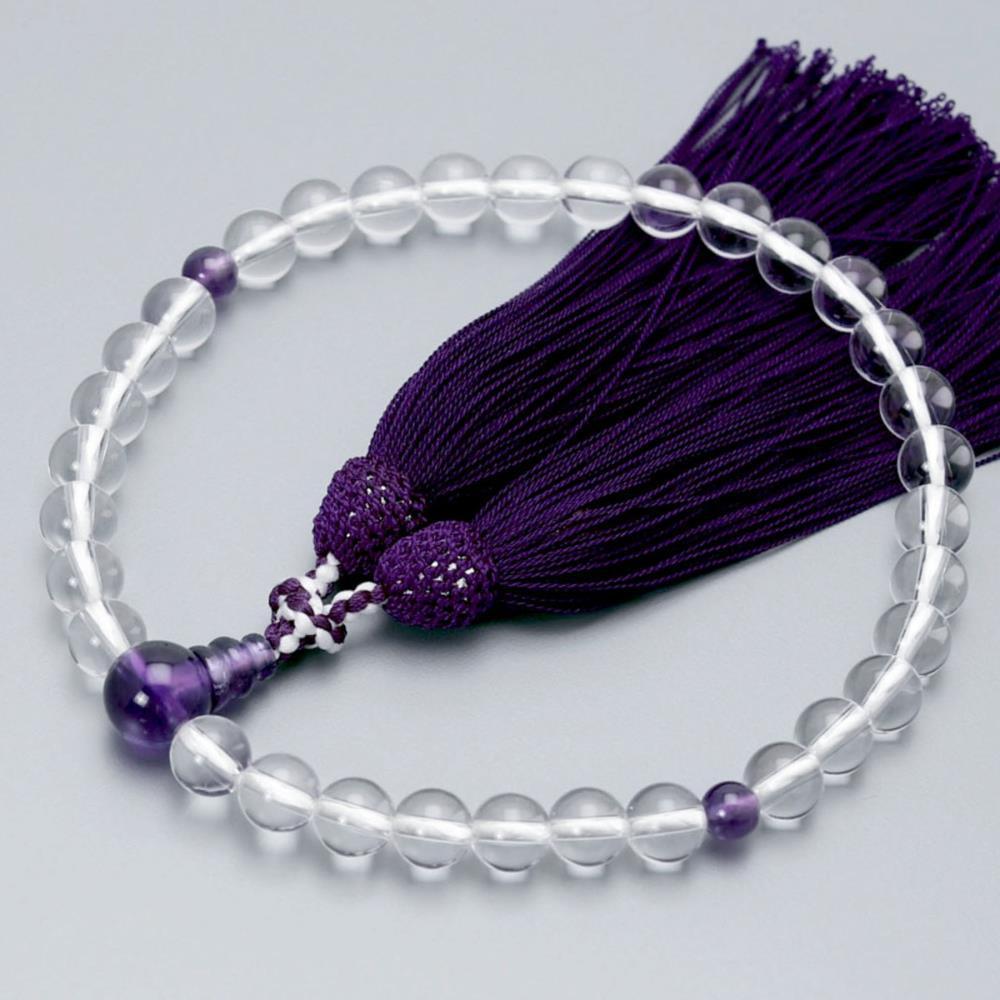 - 【京念珠】数珠 水晶 8mm玉 紫水晶 正絹松風頭房〈数珠袋付き〉|土屋念珠店 女性用 レディース 念珠 略式 3719[ 京都 念珠 珠数 京念珠 仏具 人気 おすすめ お取り寄せ 通販 送料無料 ふるさと納税 ] 261009_B-FR77