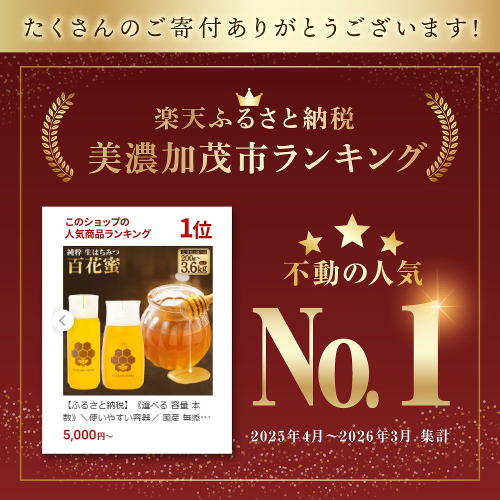 【全12回】 定期便 かの蜂 国産 百花蜂蜜 合計12kg(とんがり容器500gを毎月2本お届け) 純粋はちみつ ハチミツ 非加熱 ハニー 大容量