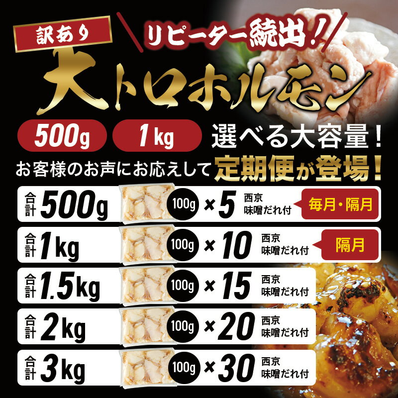 - 【ふるさと納税】【訳あり】 国産牛 大トロホルモン 500g〜3kg | 定期便 西京味噌焼き 小分け100g 味付ホルモン 牛ホルモン 焼肉 もつ 冷凍 京都 舞鶴 幸福亭