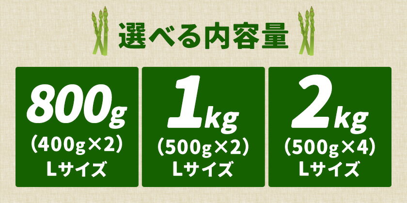 - 【ふるさと納税】アスパラガス アスパラ グリーンアスパラ L サイズ 選べる内容量 800g 1kg 2kg 門別町農業協同組合(生活資材課) 《4月上旬-5月末頃出荷》北海道 日高町 送料無料 春野菜 春 朝採り 朝採れ お取り寄せ