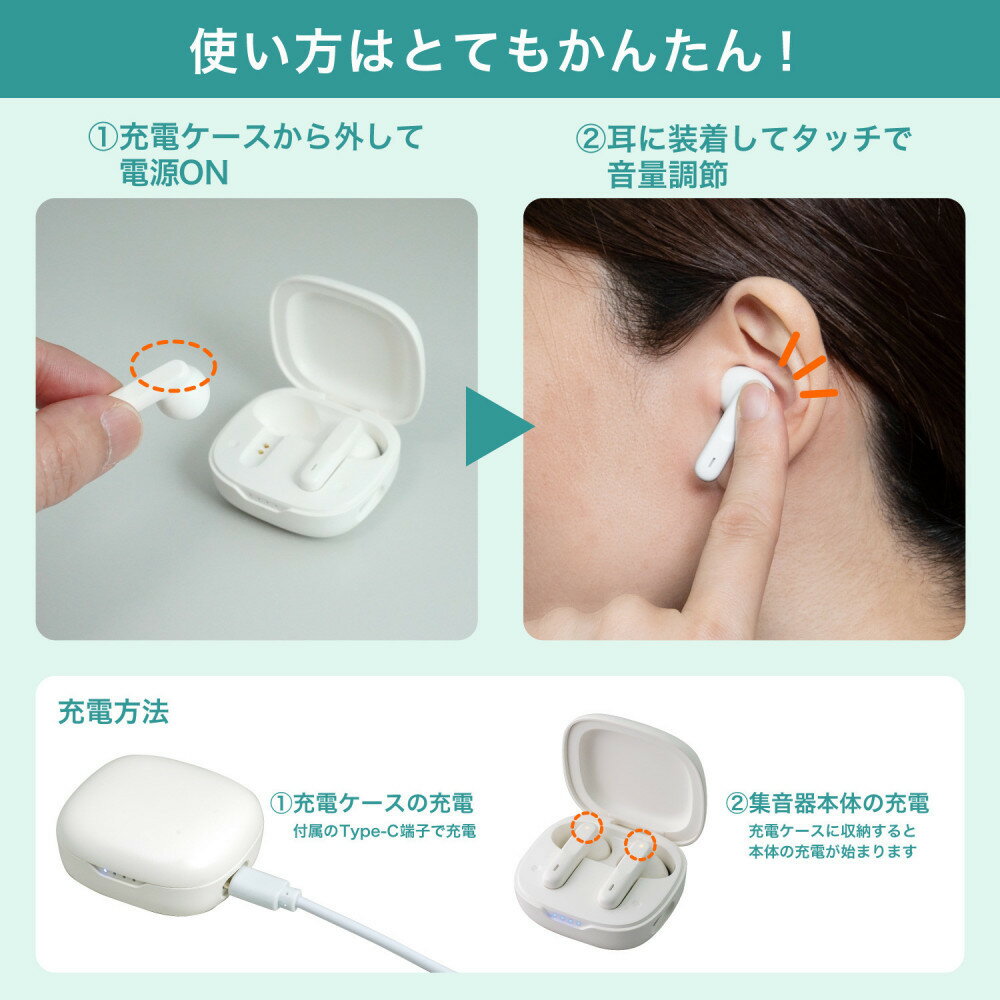 【ふるさと納税】集音器 イヤリスチャージ イヤホン型両耳 AS-E003 | 集音器 イヤホン型 両耳 大東市 補聴器 聞こえ サウンド 増幅 充電式 ワイヤレス 高音質 軽量 長時間使用 快適フィット