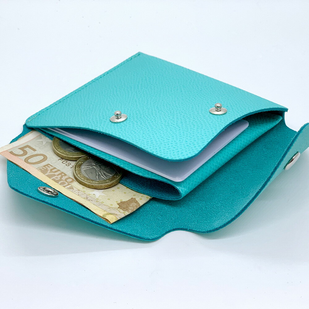 染料染めのクロコ型押し牛革 カードポケット付きコインケース(ピーコックブルー)革製品のHEDGE【1282954】