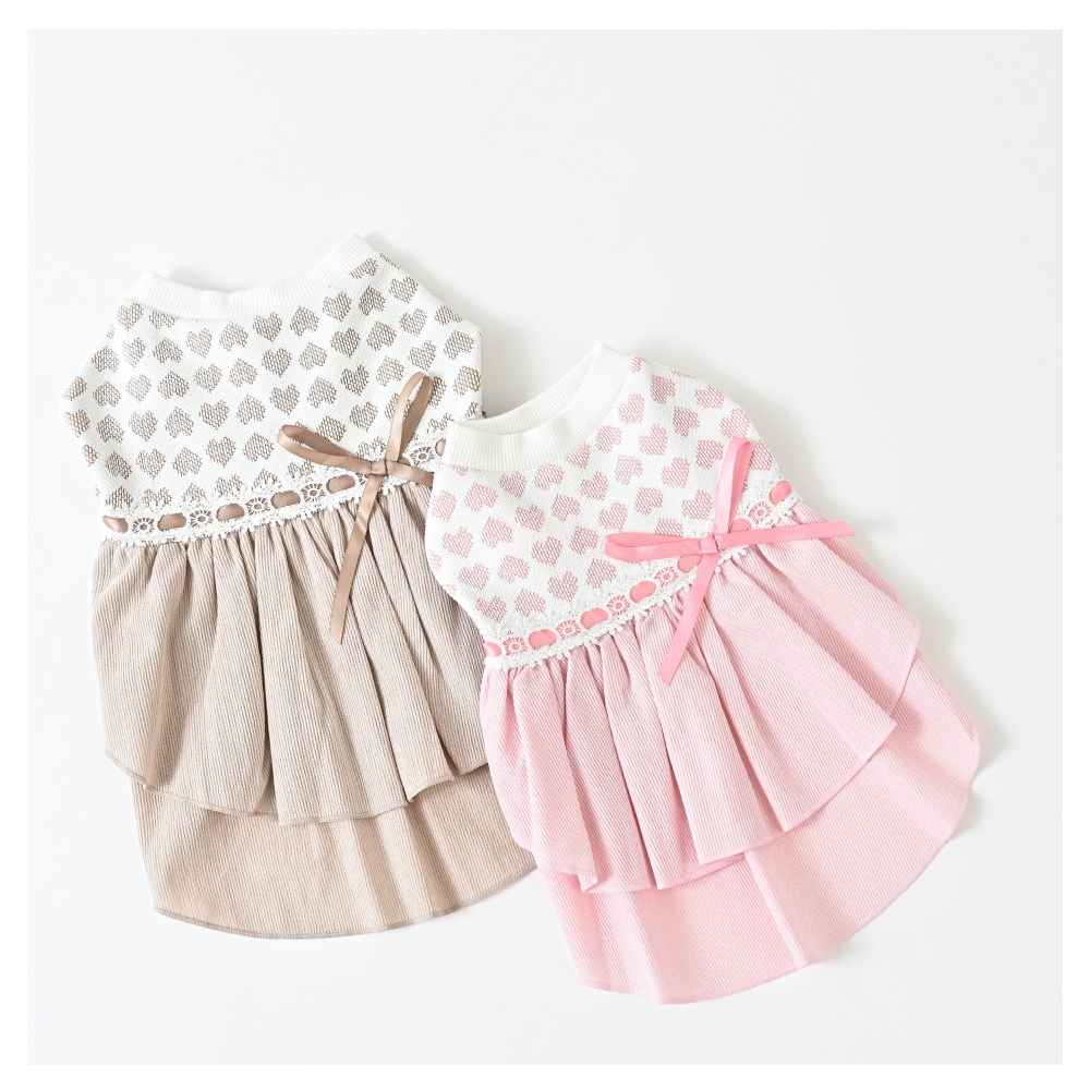 - リボンティアードワンピース ピンク ドッグウェア小型犬 秋冬 【ココアトワ(cocoAtoi)】 [№5223-0225]