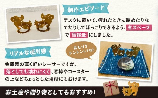 - 【金属製シーサー置物】ねこからうまれちゃったおしりトントンしてほシーサー!ペア置物 AU001